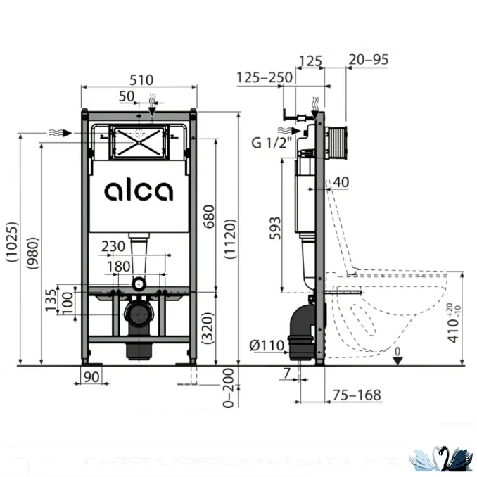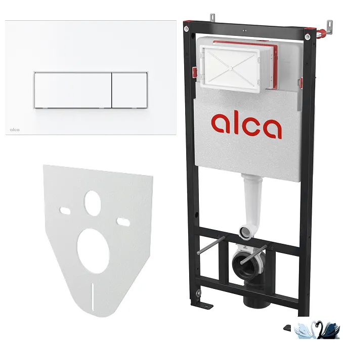 Alcaplast Set 4v1 для установки унитаза с панелью смыва Этот комплект включает в себя все необходимое для наиболее быстрого и простого монтажа унитаза и подключения его к коммуникациям. Что обеспечивается инновационными решениями в инсталляции. Практичный дизайн панели смыва легко впишется практически в любой интерьер.