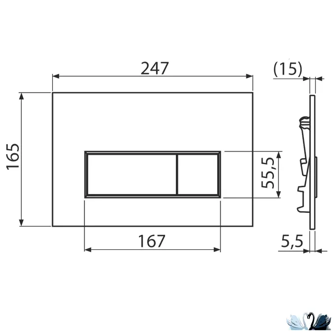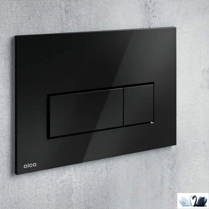 Бренд: AlcaPlast. Смывная кнопка из тонкой серии THIN черного цвета, матовая. Форма клавиш - прямоугольники.