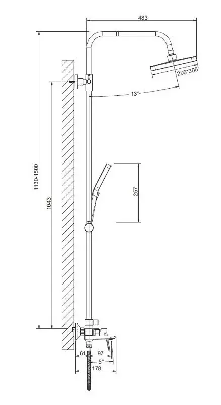 Душевая система Belz B715 B24715-5, с изливом, золото