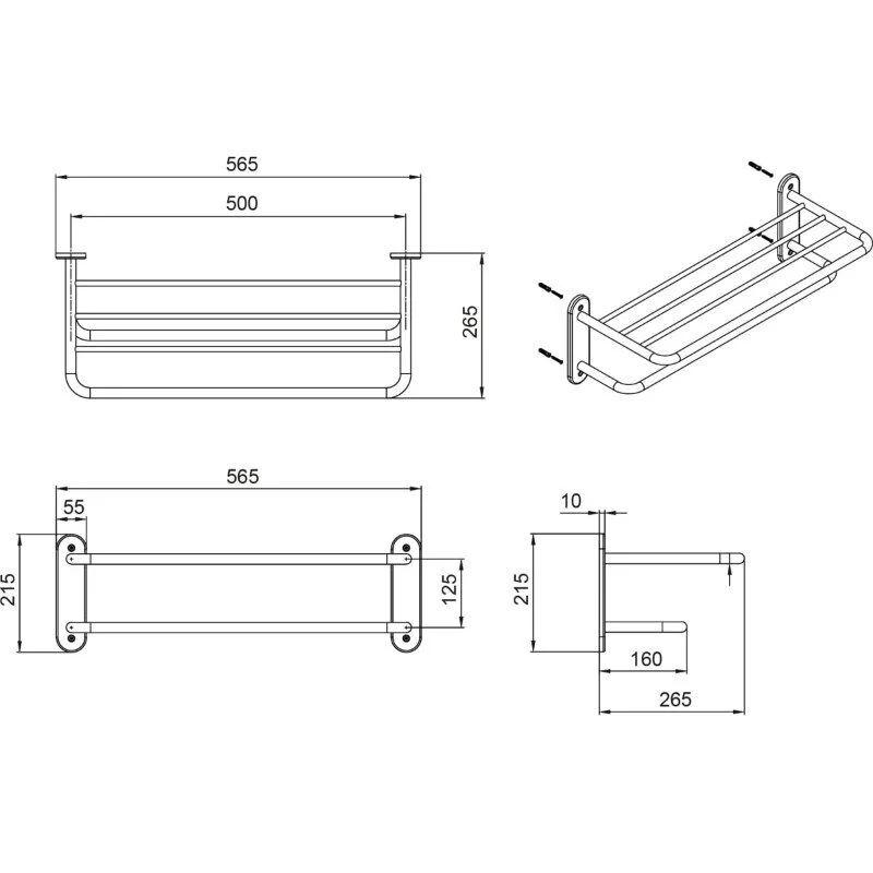 Полка для полотенец FIXSEN "HOTEL" черная, 66 см FX-31015В