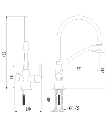 • Для крана с питьевой водой: кран-букса с керамическими пластинами (угол поворота – 90 градусов)