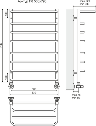 Полотенцесушитель Арктур с полкой П8 500х796 Терминус