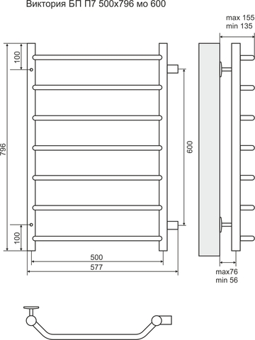 Полотенцесушитель Виктория П7 500х796 б/п 600 "Терминус"