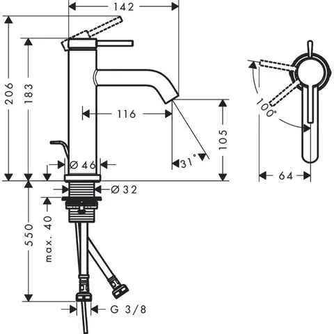 Смеситель для раковины Hansgrohe Tecturis S, 73314140, с донным клапаном, шлифованная бронза
