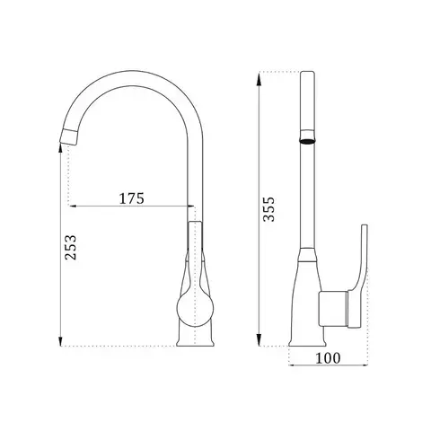 Высокий смеситель для кухни BELZ . Керамический картридж 35 мм. Поворотный излив. Гибкая подводка 45 см. Усиленная гайка крепления смесителя.